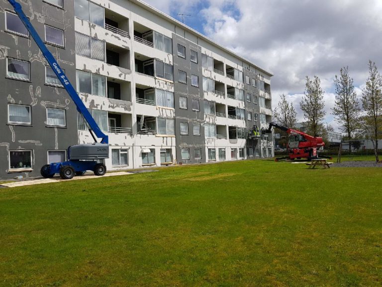 Hér eru myndir af verkefnum sem við höfum lokið eða erum að vinna við Stóragerði 22-26 múrviðgerðir og gluggaskipti Stóragerði 22-26 Stóragerði 22-26 Fellaskóli þakviðgerðir Ásvallagata 20. Þakjárnskipti og gluggaskipti Nemendasalerni Hagaskóla Sjóminjasafn Bryggjusalur